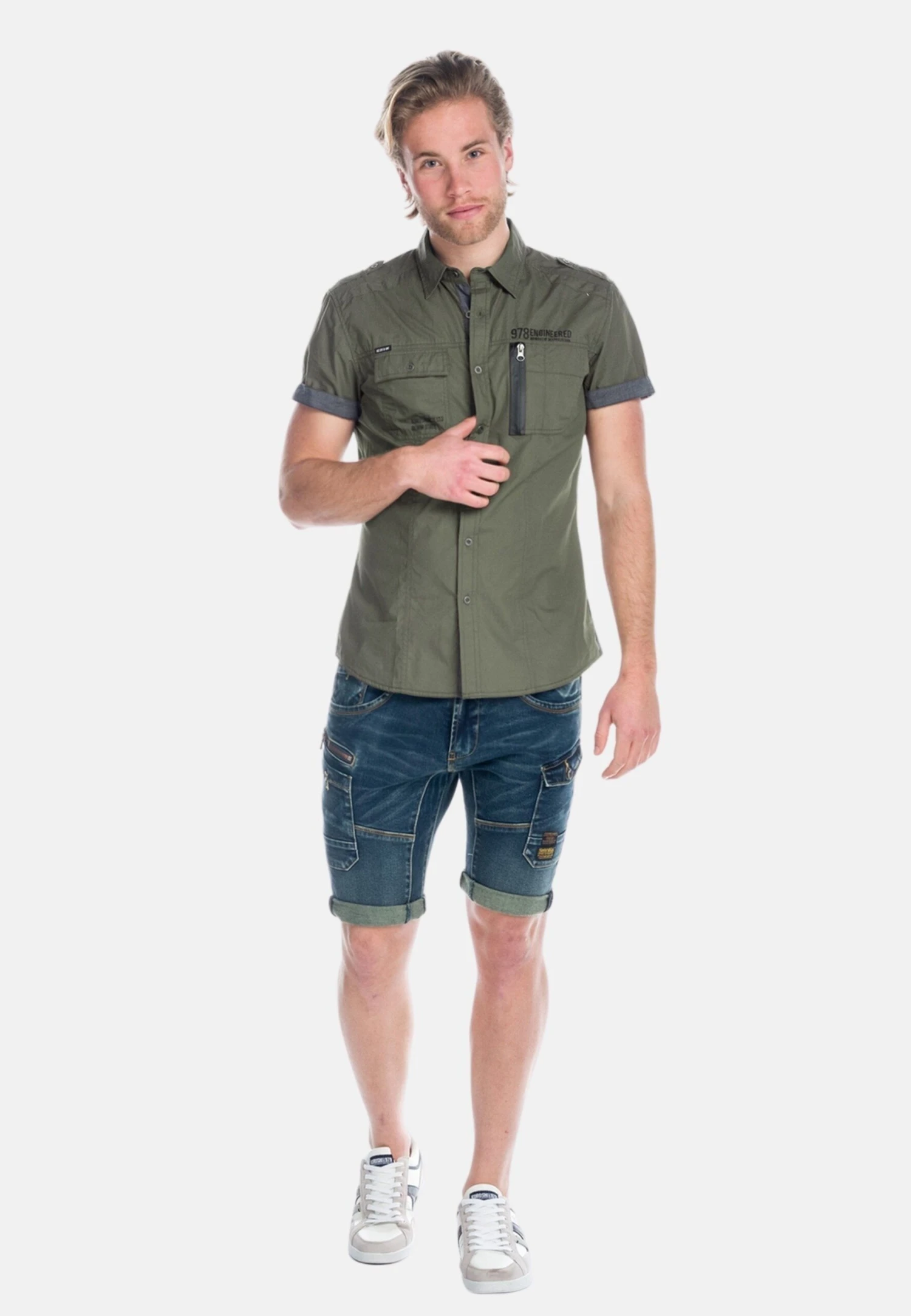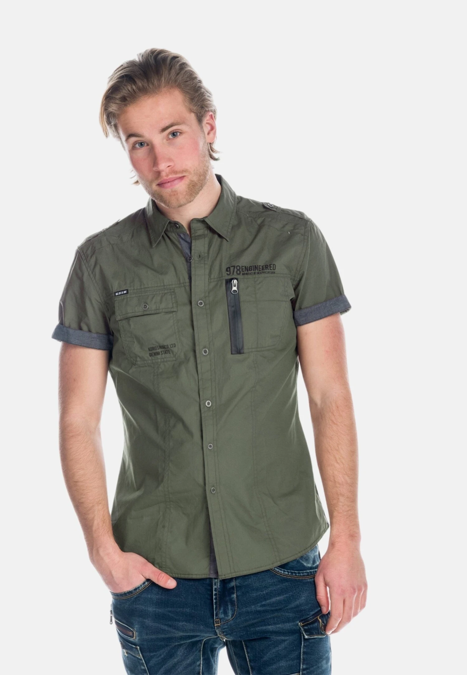 Koroshi SHORT SLEEVE WASH EFFECT – Koszula – Oliva Olive